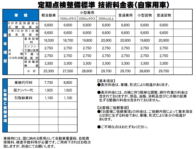 当社の整備価格は「地域で一番安い」とは言いませんが、万全の整備を行った上でお値打ち価格で価格以上の「安心」をご提供しております。